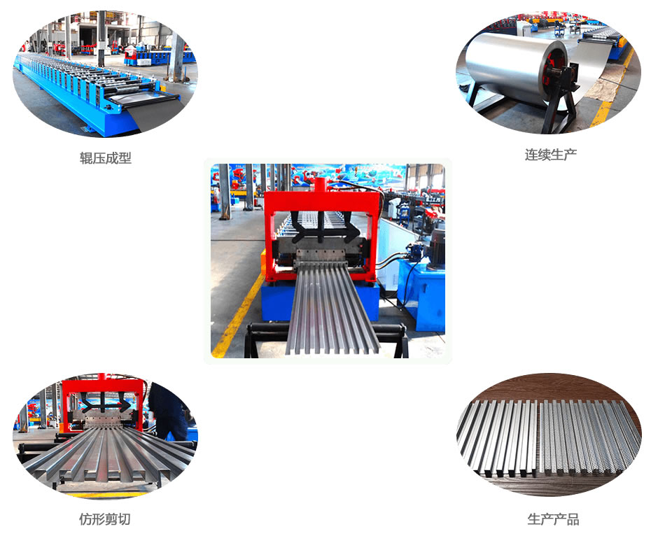 工藝流程: 開卷→進料導向→輥壓成型→切斷→托料出板