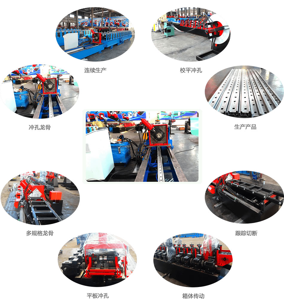 開卷→引料校平→儲料→伺服送料→平板沖孔→儲料→輥壓成型→仿形切斷→出料