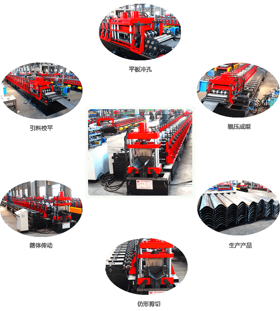 工藝流程:   被動開卷 → 導向進料→ 平板沖孔→輥壓成型→仿型剪切 →出料臺