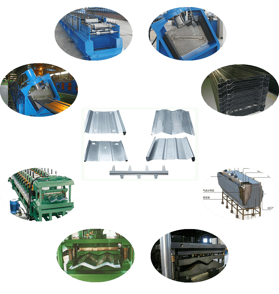 開卷→導向、引料→輥壓成型、成品矯正→沖孔切斷→托料出板