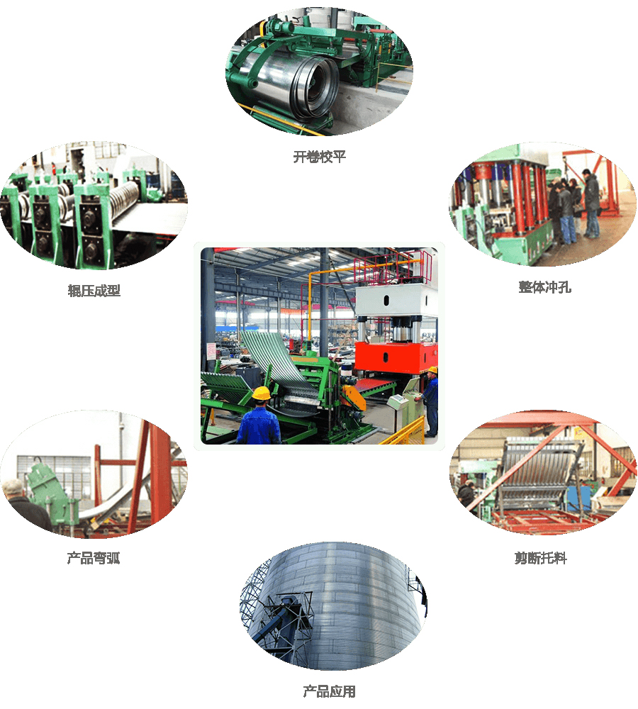 開卷—引料、校平—輥壓成型、矯正—沖孔—彎弧—剪切—出料
