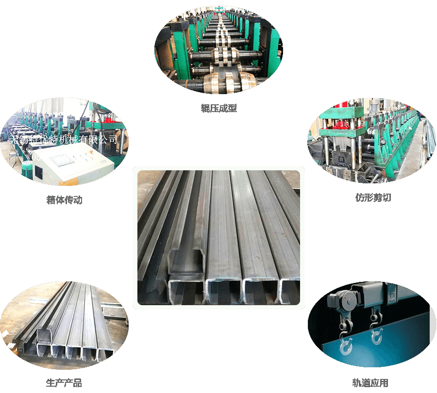 工藝流程: 開卷—導向進料—輥壓成型—定尺切斷—托板出料