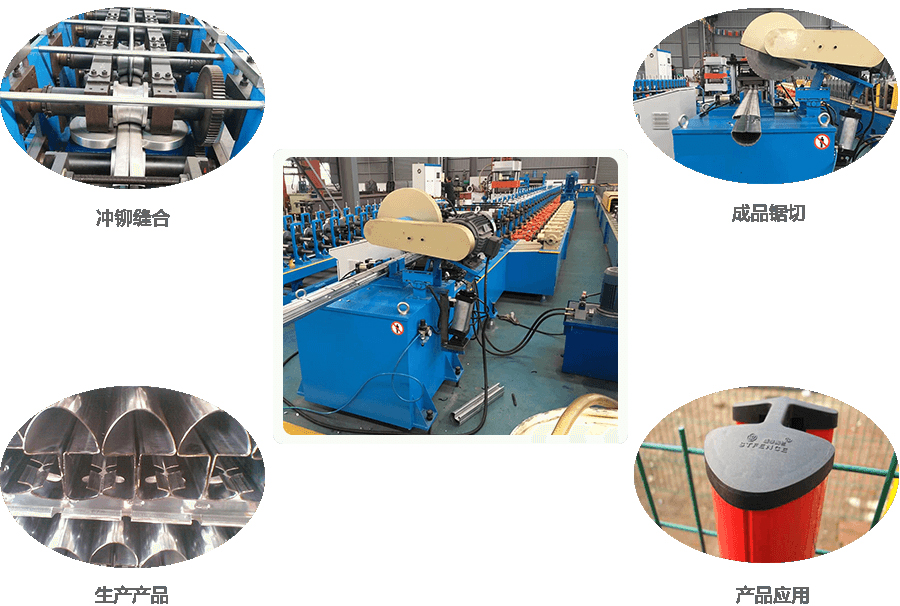 工藝流程: 開卷—導向、輥壓成型、液壓沖鉚、液壓沖缺口—成品鋸切切斷—出料