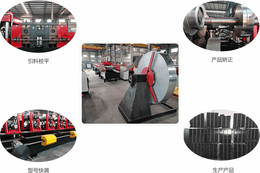 產品可作為大中型工業民用建筑的主體受力結構。快速換型C型鋼機又叫C型鋼檀條壓瓦機,是眾多的壓瓦機品種中最常見的一種,屬基礎性壓瓦機種類。C型鋼不是槽鋼,是薄板如0.35毫米厚的鋼板壓制而成,用作鋼結構廠房的檁條。